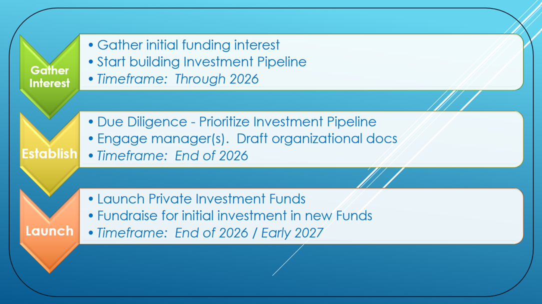 Our goal is to match a pipeline of talented Fund managers with capital funding sufficient to establish the manager while properly compensating the initial source of funding.